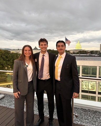 University of Iowa Undergraduate Student Government President Thomas Knudsen, Vice President Emily Cross, and Director of Governmental Relations Kartik Kalra recently traveled to Washington, D.C. to meet with federal representatives and University of Iowa alumni.